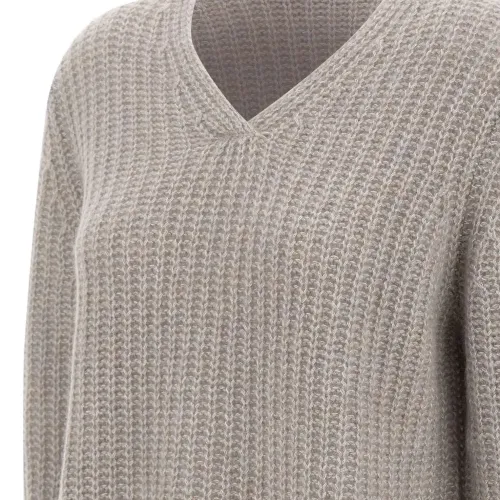 жемчужно-серый фактурный трикотажный джемпер с V-образным вырезом и длинными рукавами