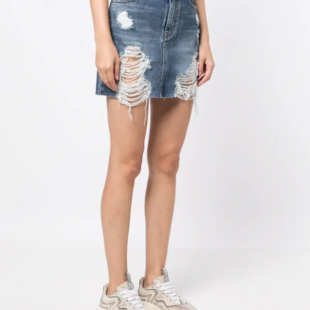 Джинсовая юбка с эффектом потертости