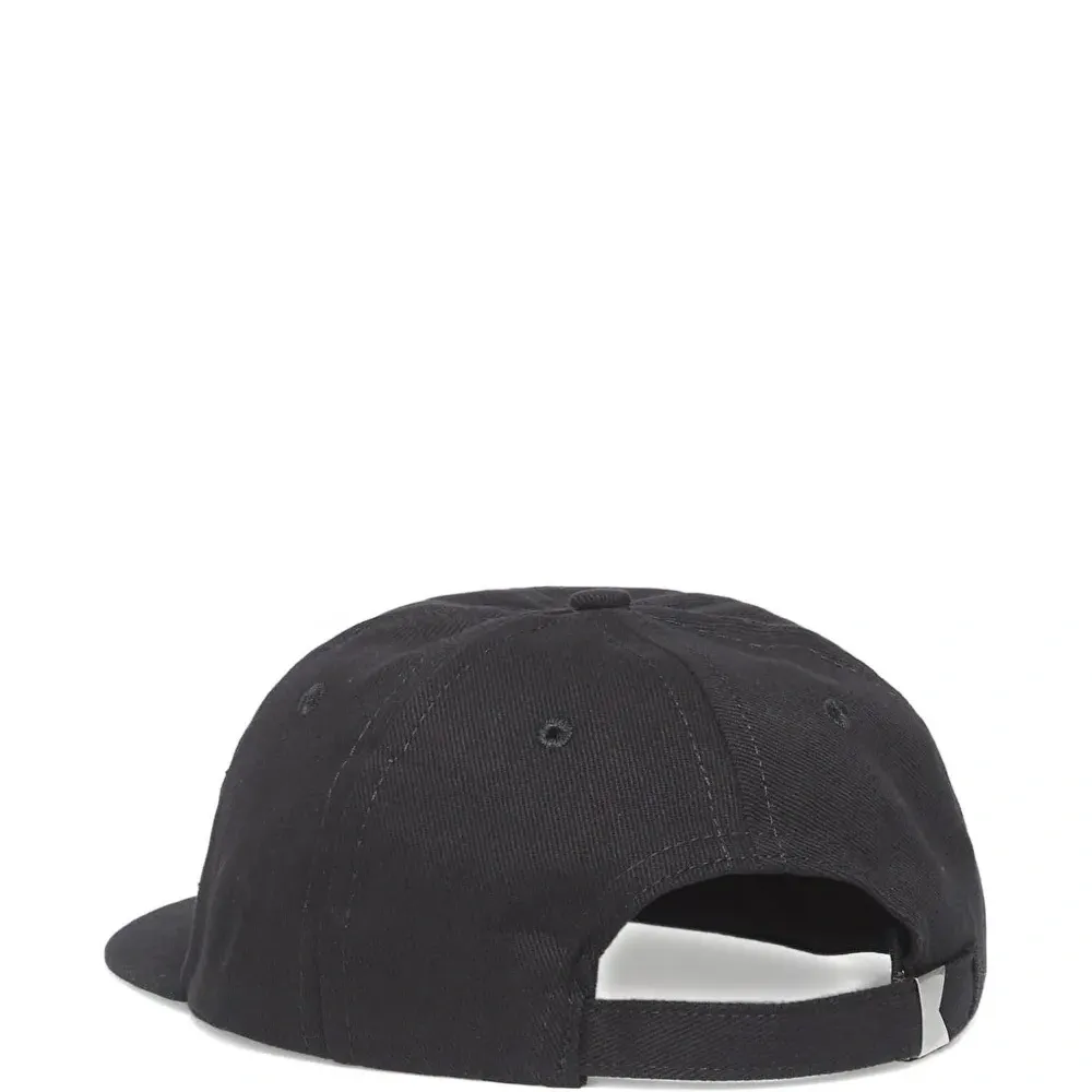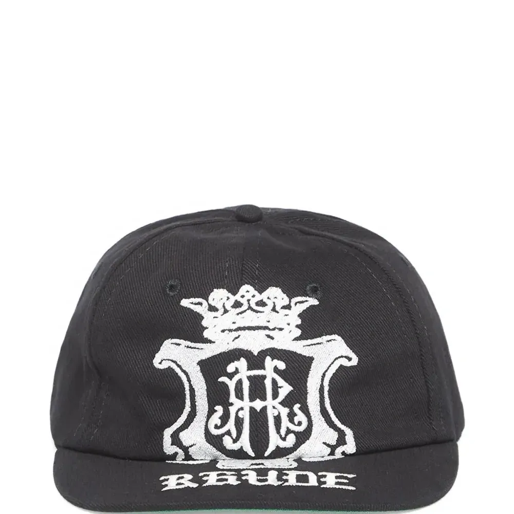 черная кепка с изогнутым козырьком и вышитыми деталями