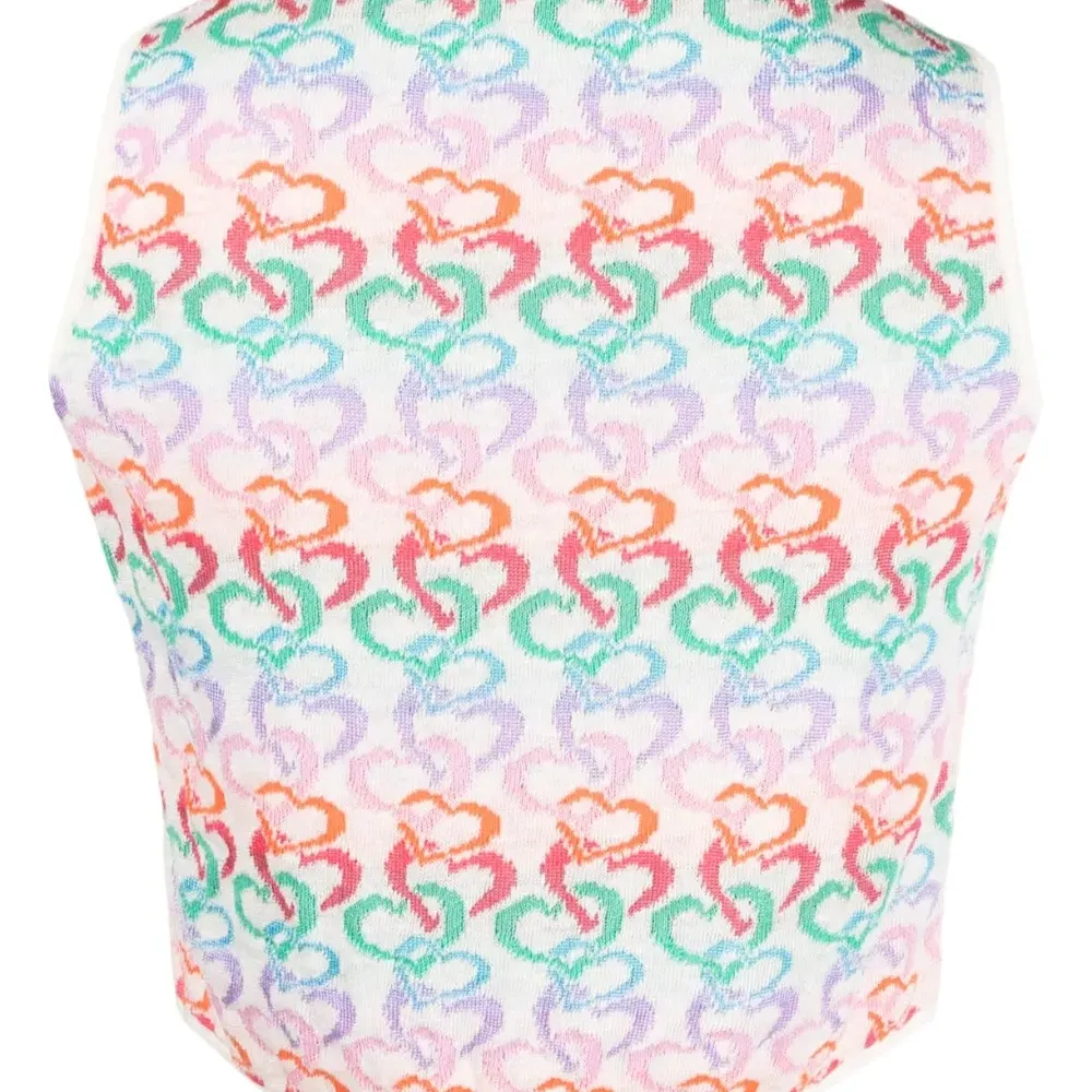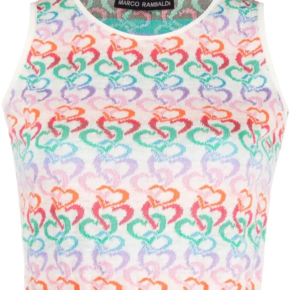 Белый, разноцветный, лен, трикотажный материал, вязка в технике интарсия, круглый вырез, без рукавов, укороченная длина и прямой подол. Этот товар как минимум на 50% состоит из материалов, которые признаны более безопасными для окружающей среды, и/или произведены с использованием методов, которые помогают сократить потребление воды и химических веществ. Узнать больше о том, какие товары получают отметку «Ответственный выбор», можно из материала «Как мы оцениваем экологичность и этичность».