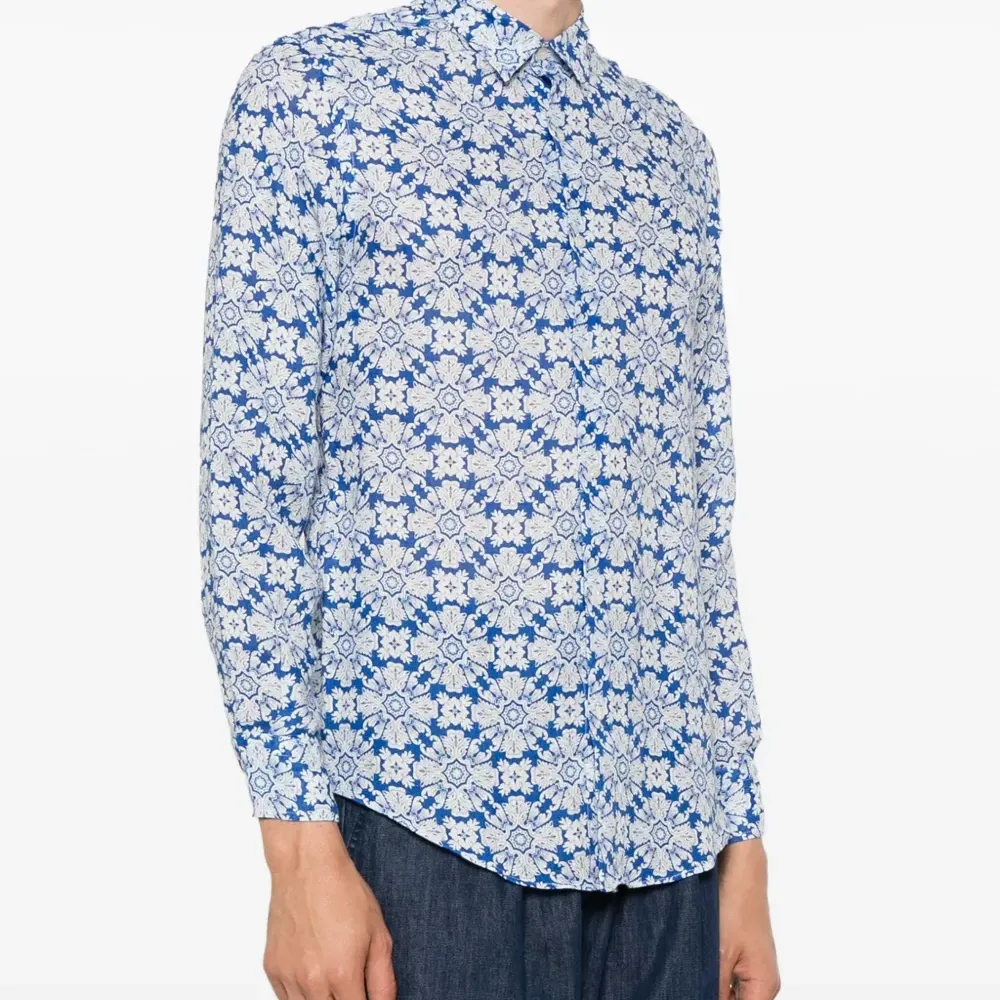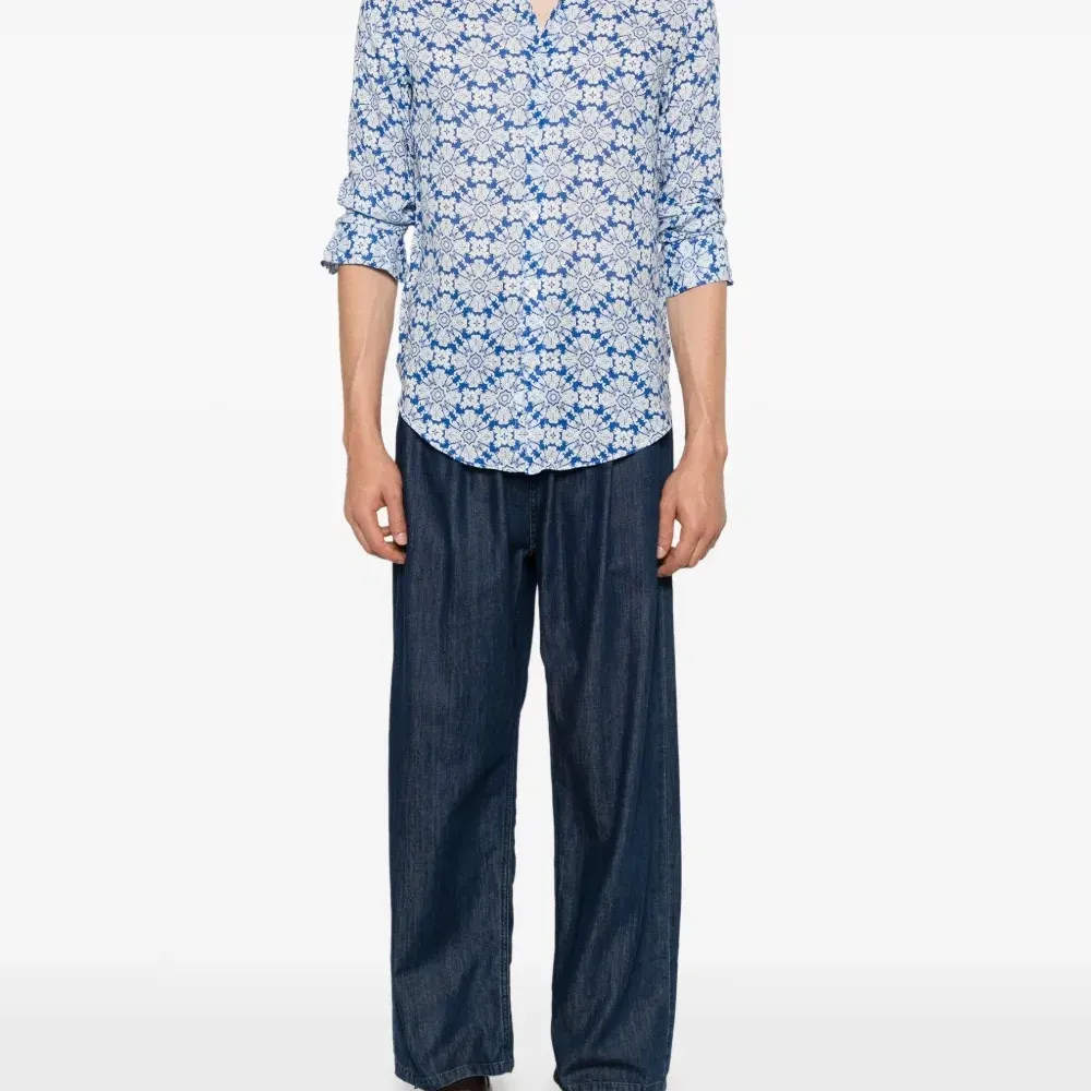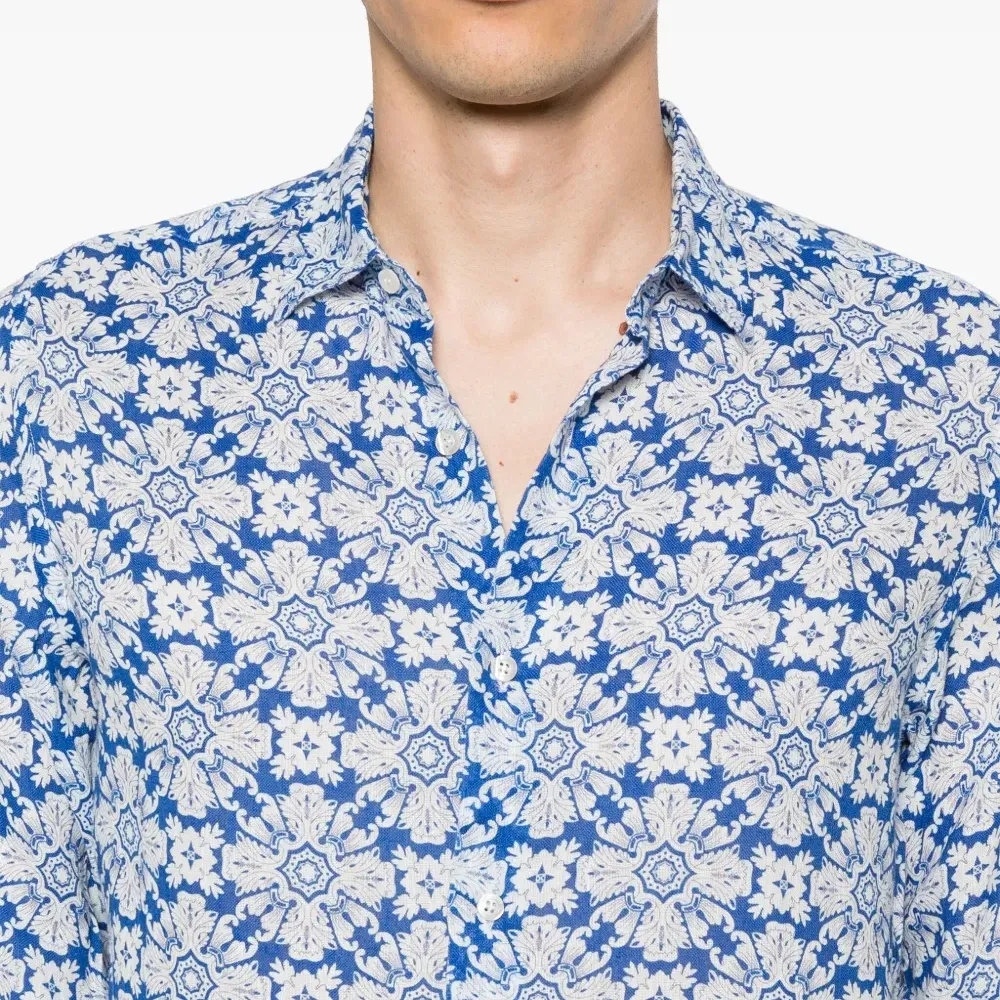 Льняная рубашка с цветочным принтом
