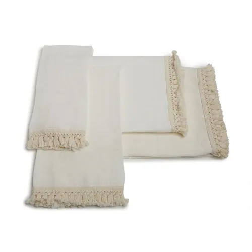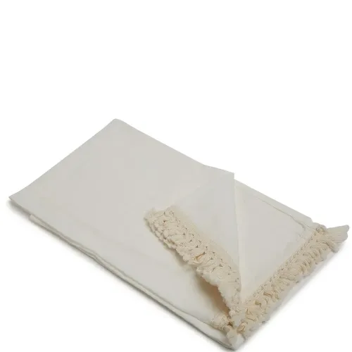 Белый, лен и края с бахромой.