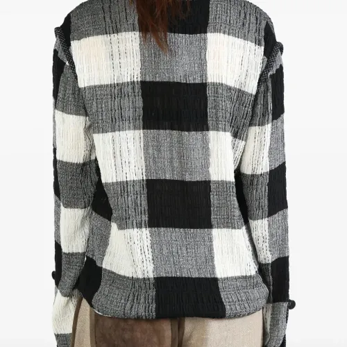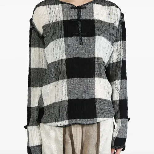 Plaid-patterned long-sleeve top