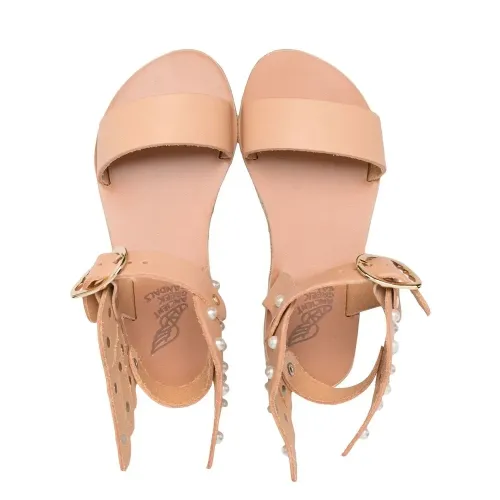 Розовый, кожа, застежка на пряжке, открытый носок и плоская резиновая подошва. Этот бренд получил хорошую оценку, потому что следит за соблюдением достойных условий труда на всех этапах цепочки поставок..