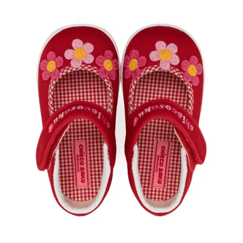 Балетки на липучках с цветочной вышивкой