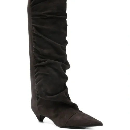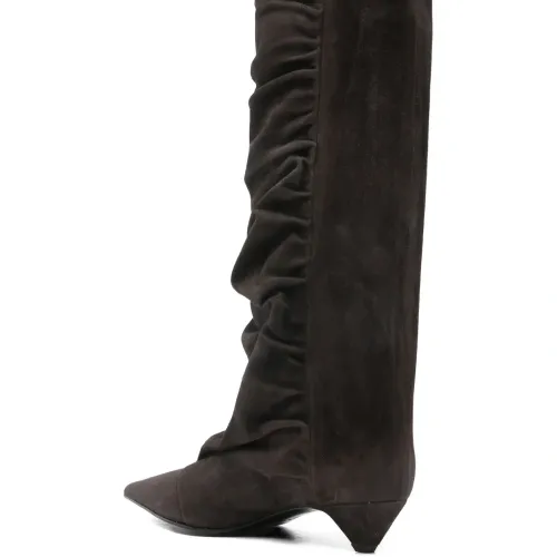 Сапоги до колена из замши с драпировкой