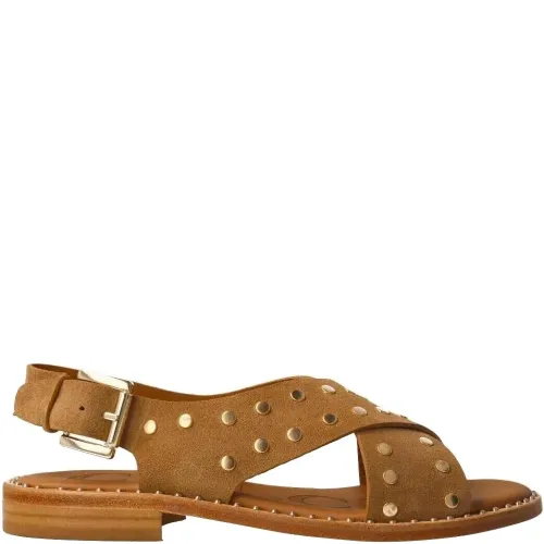 Босоножки без каблука Calce с перекрёстными ремешками и заклёпками