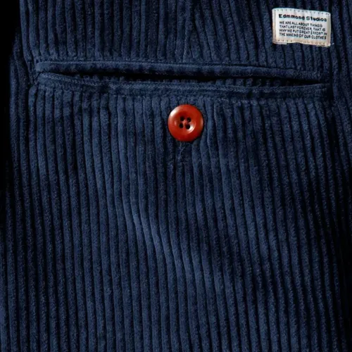 синяя вельветовая фактура, пуговицы, задний накладной карман, подвернутый низ