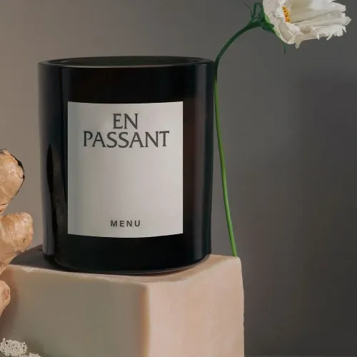 Коричневый, воск, стекло, нашивка с логотипом спереди и фитиль из хлопка.