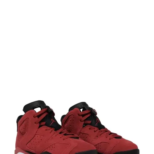 Released in late May 2023, the Air Jordan 6 Retro GS ‘Toro Bravo’ dresses the legacy silhouette in a smooth suede upper in an eye-catching scarlet hue. Heritage details include perforated detailing, a spoiler-like heel tab, and a molded tongue with two grip holes that enable easy on and off. A Jumpman logo decorates the lace cover, complementing a second Jumpman embroidered on the heel. Lightweight cushioning is provided by a foam midsole, enhanced with a visible Air-sole unit in the heel and supported underfoot by a translucent rubber outsole.Item is in store fresh condition and not eligible for returns