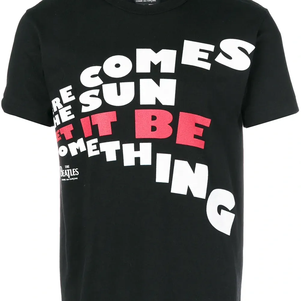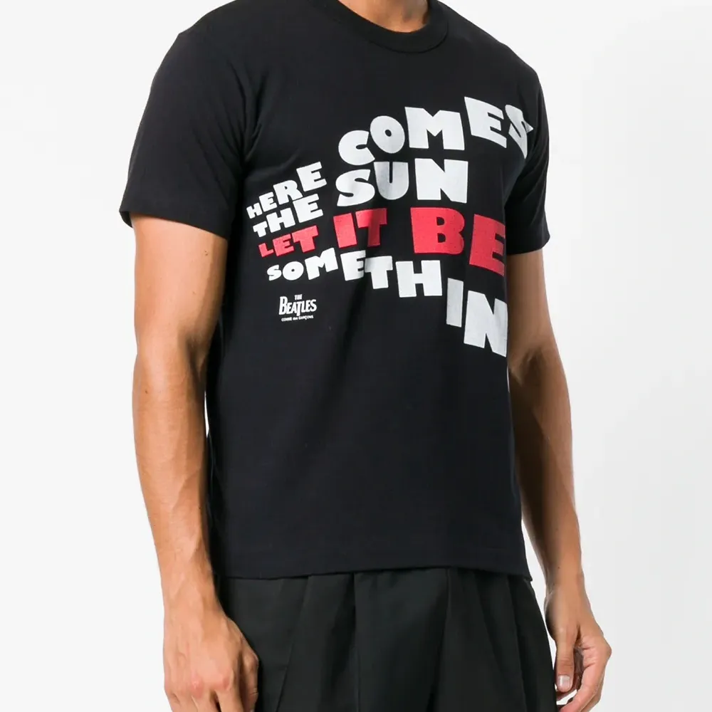 Черная хлопковая футболка с принтом от The Beatles X Comme Des Garçons.Модель в стиле унисекс.