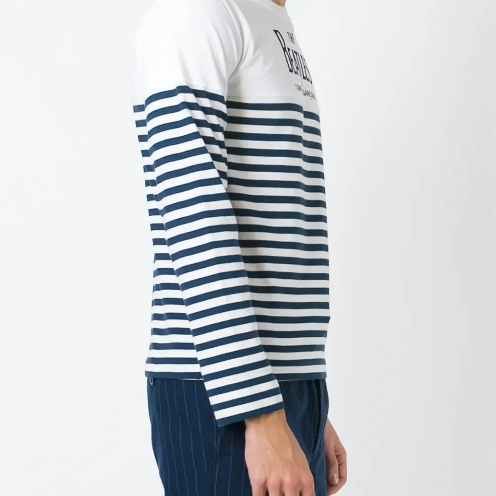 Синяя с белым хлопковая кофта в полоску от The Beatles X Comme Des Garçons.