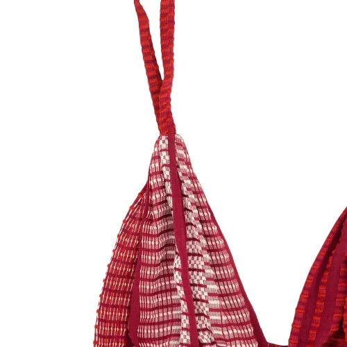 бордовый, рубчатая текстура, геометрический узор, регулируемые бретели, застежка на крючки, смесь шелка