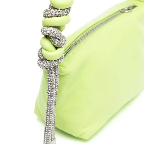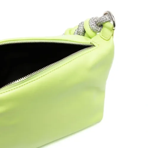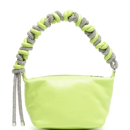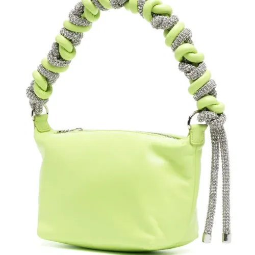 Салатовый, кожа, декор из кристаллов, серебристый, плетеная ручка, основное отделение и передний карман на молнии.