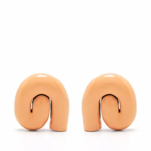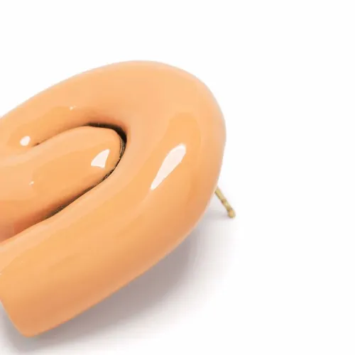 Бежевый, дерево, крупные кольца и застежка-штифт. В комплект входят две серьги.