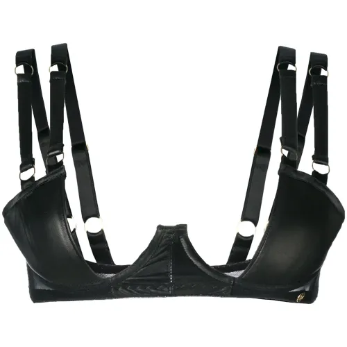 Черный кожаный бюстгальтер 'Nina' от SOMETHING WICKED.Примерка белья разрешена исключительно поверх собственного.