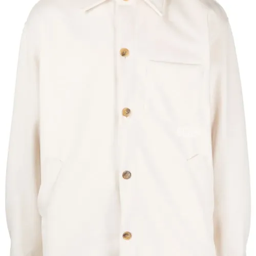 Logo-embroidered button-up jacket