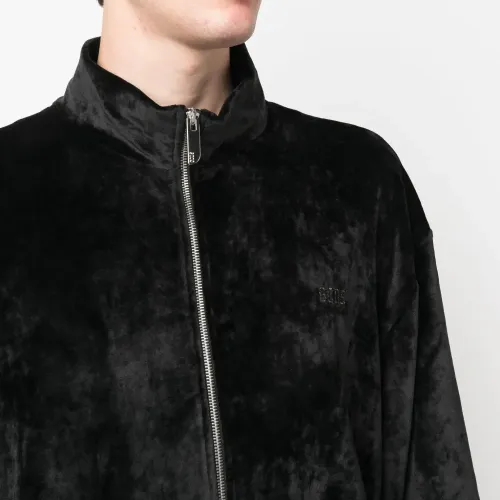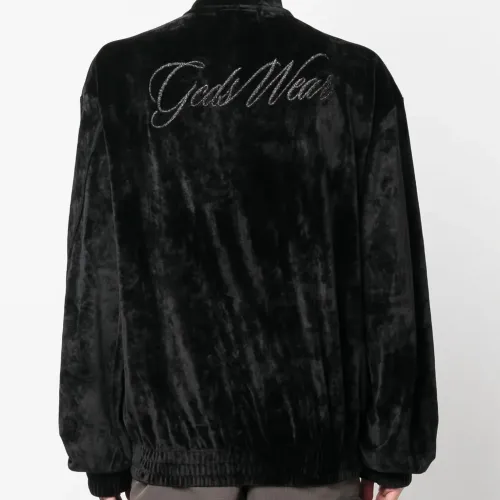 Бархатный бомбер с вышитым логотипом