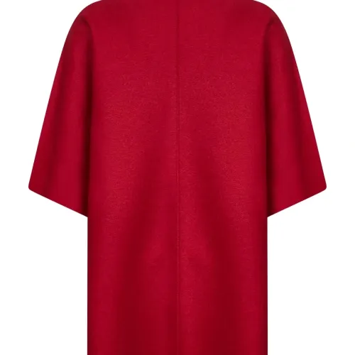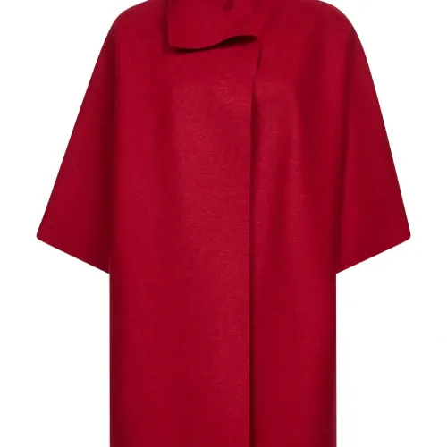 красная короткорукавная шерстяная футболка из вирджинской шерсти с сложенным воротником, асимметричной застежкой и прямым подолом