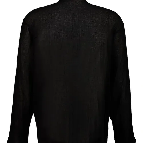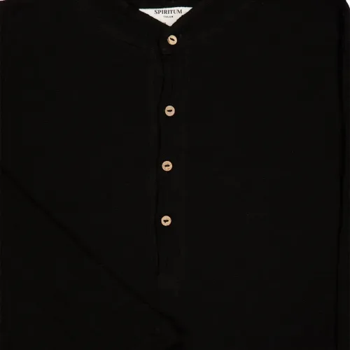 черные пуговицы из кокосовой скорлупы, длинные рукава, текстура газ, воротник-стойка, застежка на пуговицы