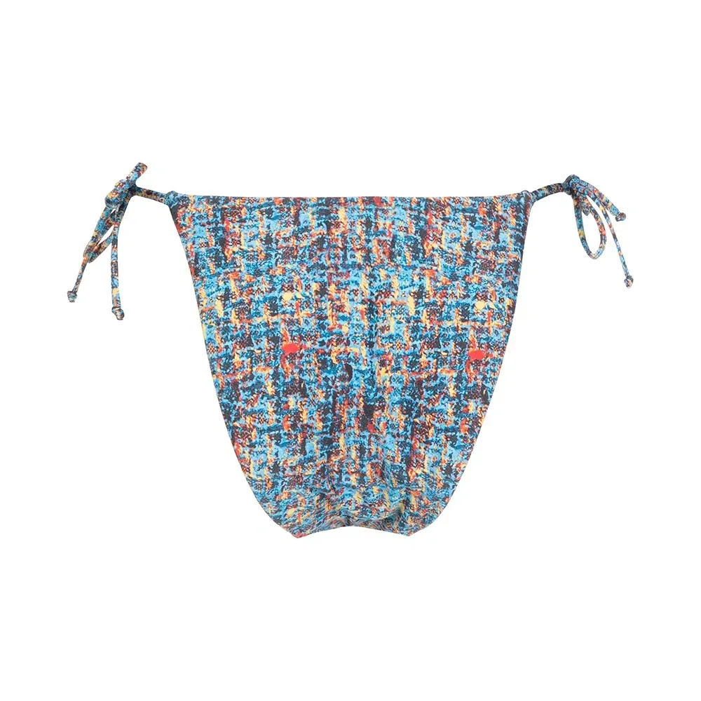 Абстрактный принт, плавки бикини с завязками по бокам и высокий вырез. Цвет: разноцветный. Пожалуйста, примеряйте купальники и пляжные шорты только поверх собственного белья. .