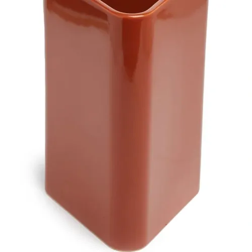 Коричнево-терракотовый, керамика, глазурованное покрытие, треугольная форма и дизайн с открытым верхом.