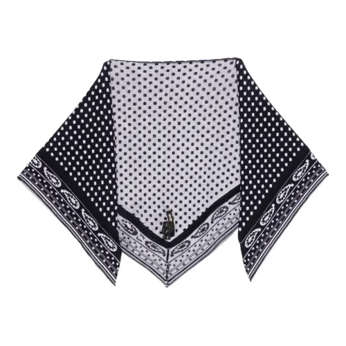 темно-синий и белый шарф треугольной формы из смеси шерсти и кашемира с принтом в горох