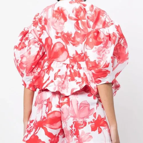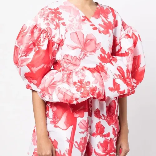 топ с объемными рукавами и цветочным принтом