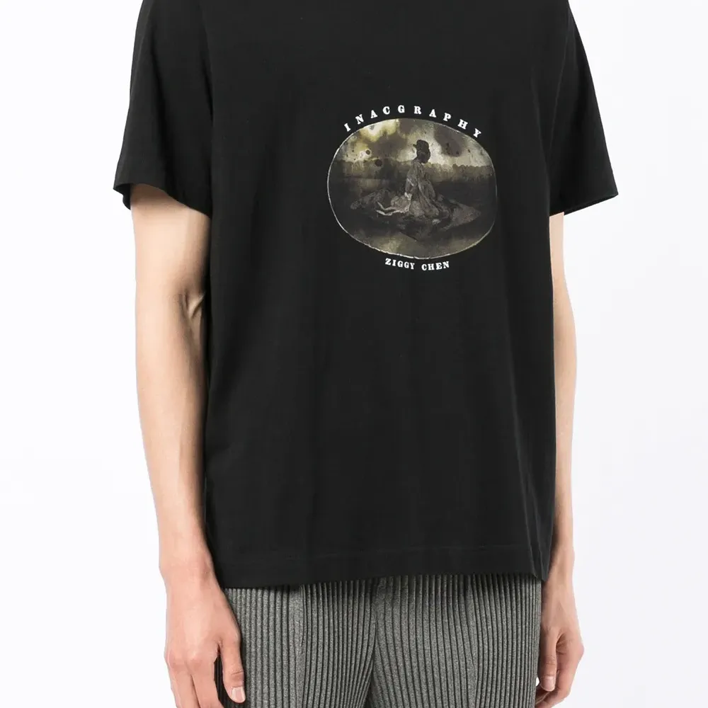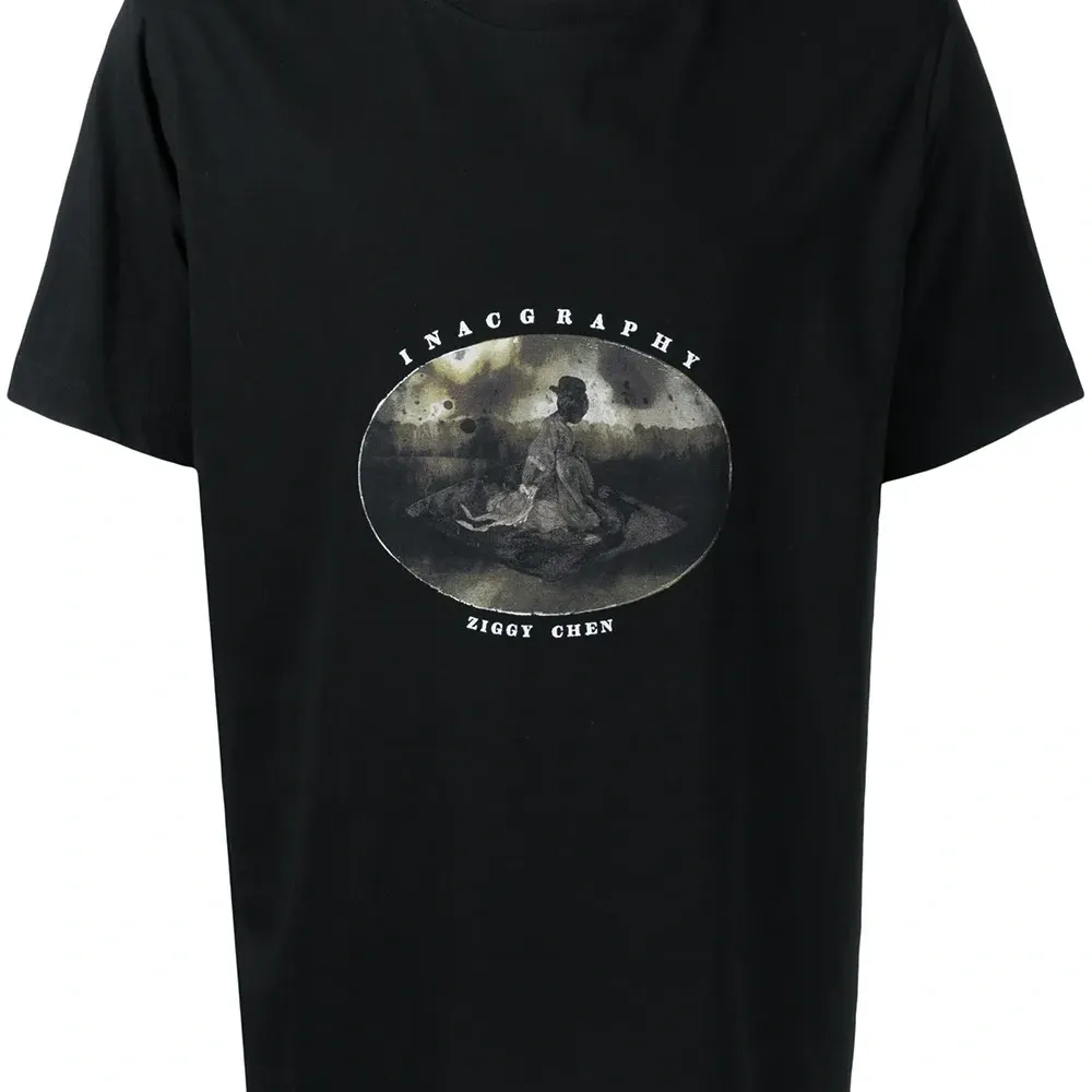 Ткань джерси, графичный принт спереди, круглый вырез, короткие рукава и прямой подол.