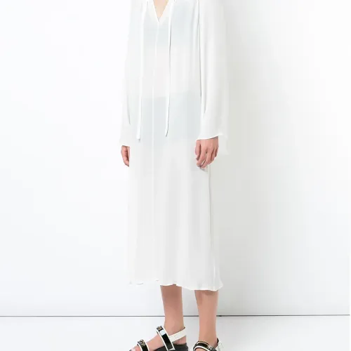 Шелковое платье цвета слоновой кости с рукавами клеш от VOZ.