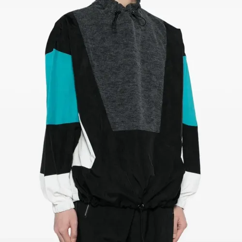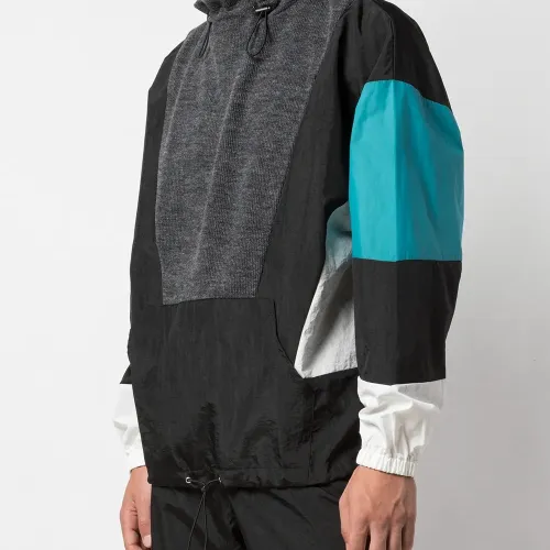 Ветровка оверсайз с трикотажной вставкой от God's Masterful Children. Дизайн колор-блок, высокая горловина, приспущенные плечи, длинные рукава, эластичные манжеты и подол на шнурке.
