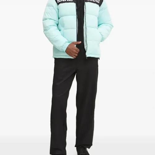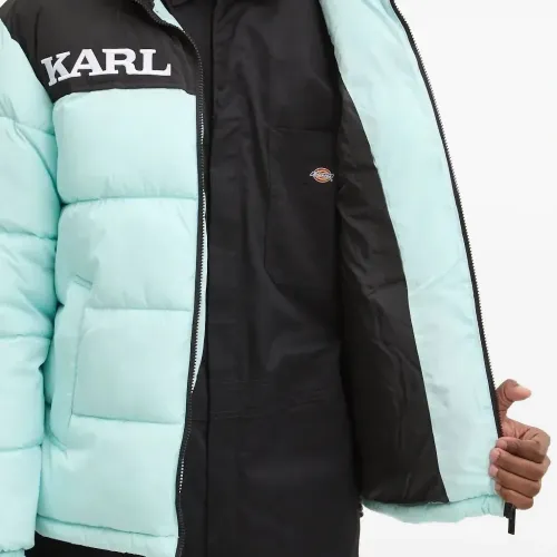Пуховик в стиле колор-блок