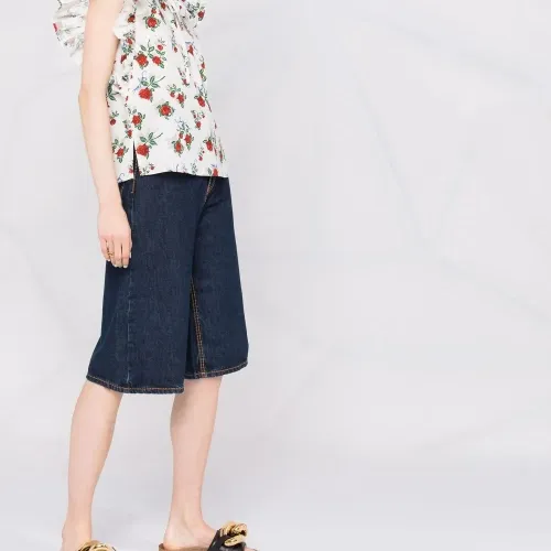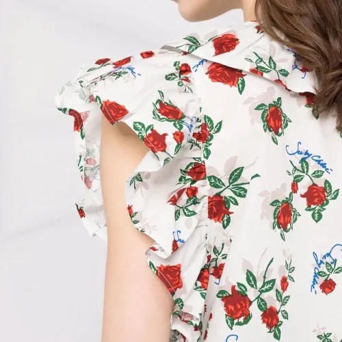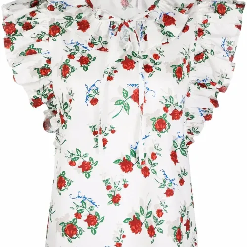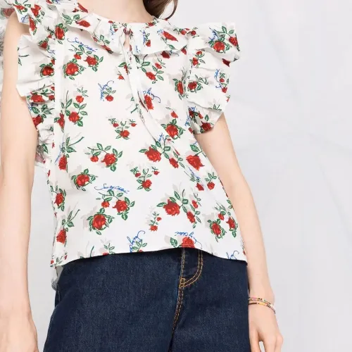 блузка с оборками и цветочным принтом