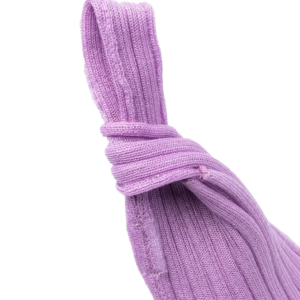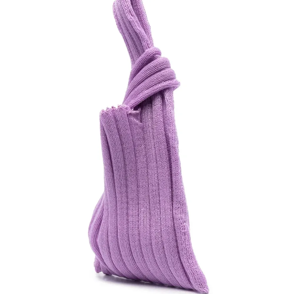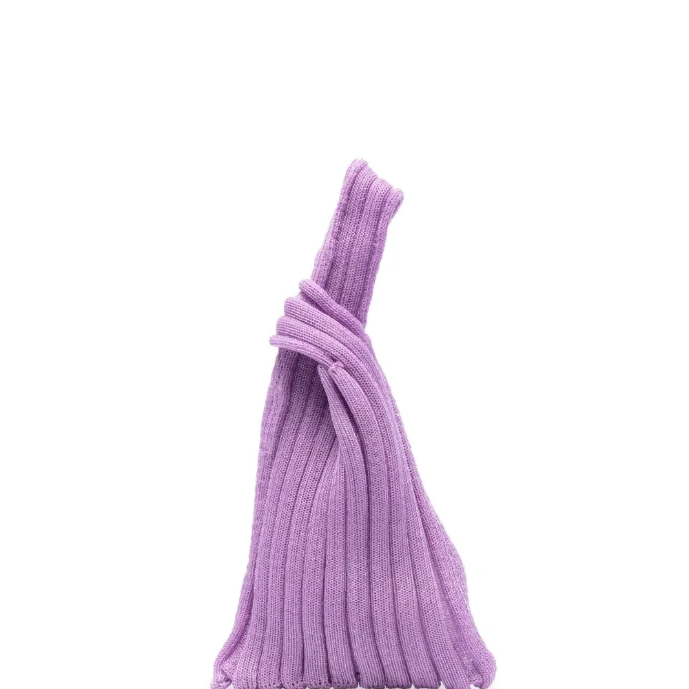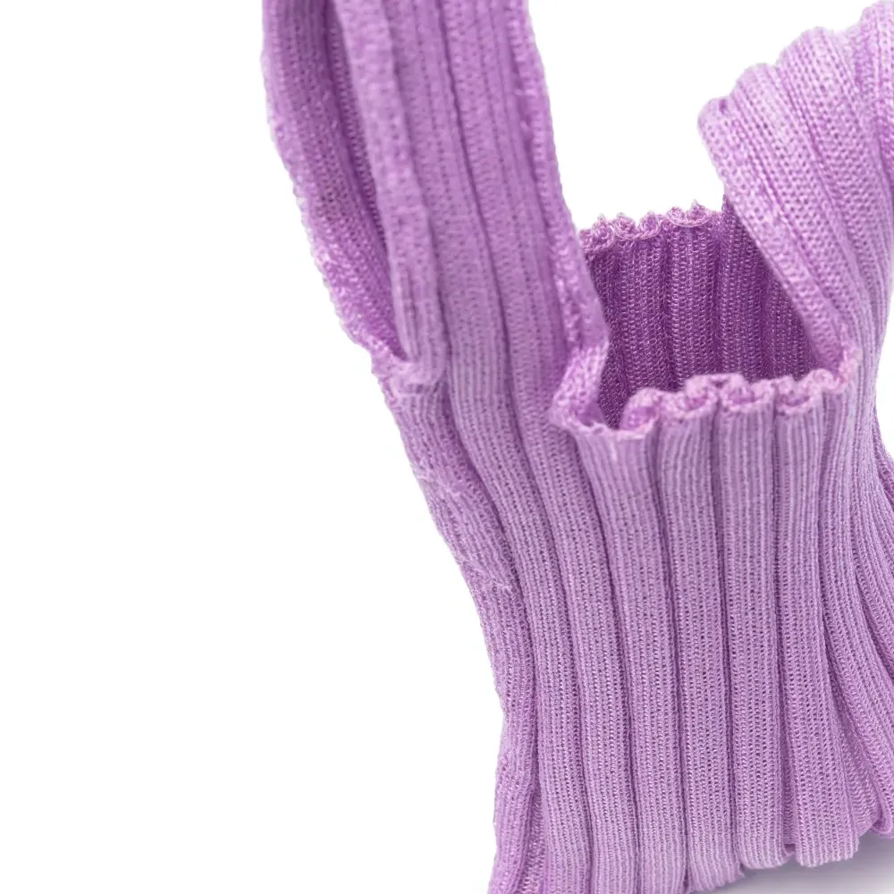 Лиловый, смесовый хлопок, трикотаж в рубчик, две плоские верхние ручки и основное отделение.