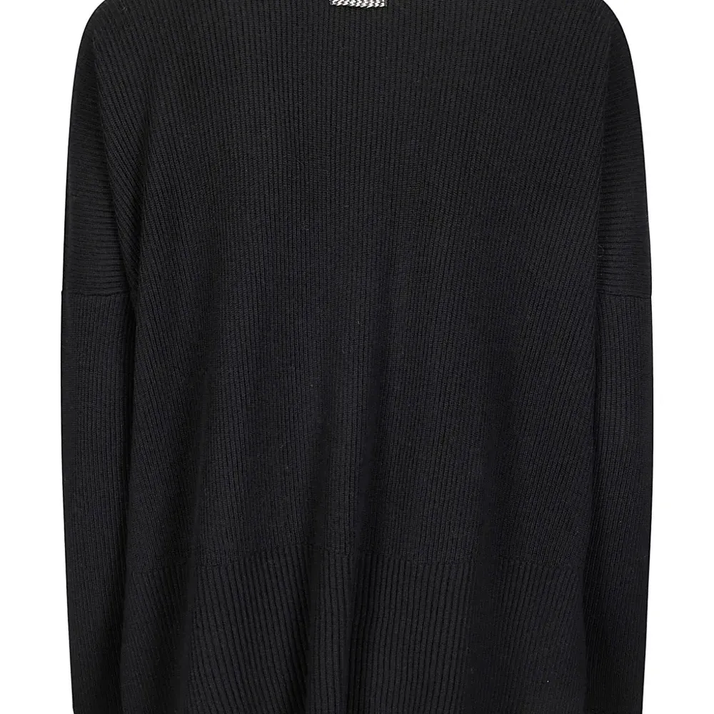 черный вязаный джемпер с V-образным вырезом и длинными рукавами