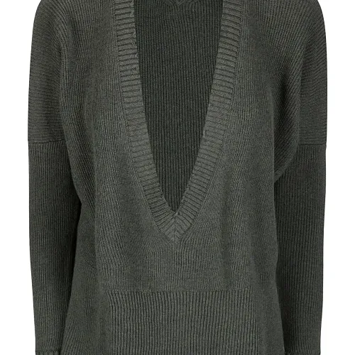 вязаный топ в рубчик с v-образным вырезом и длинными рукавами