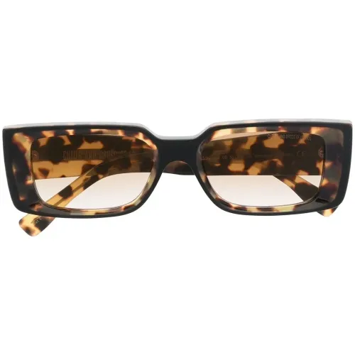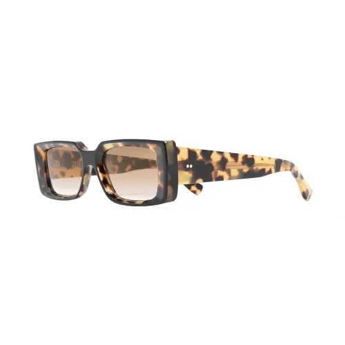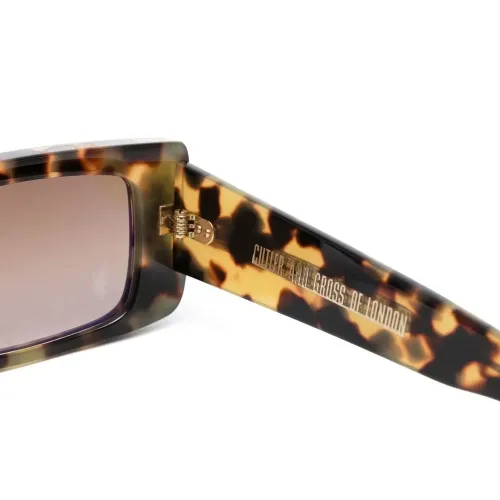 Коричневый, черный, ацетат, камуфляжный принт, коричневые линзы, прямоугольная оправа, скульптурные дужки и закругленные дужки. В комплект входит защитный чехол для очков.