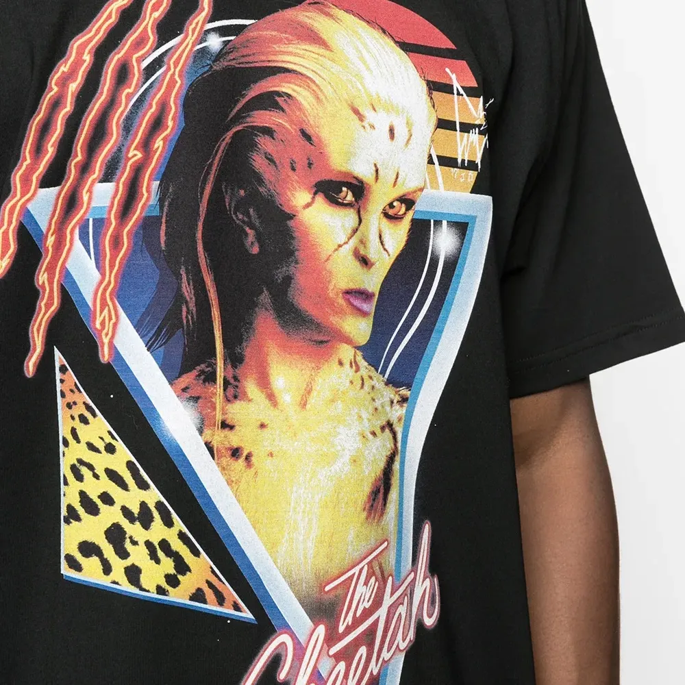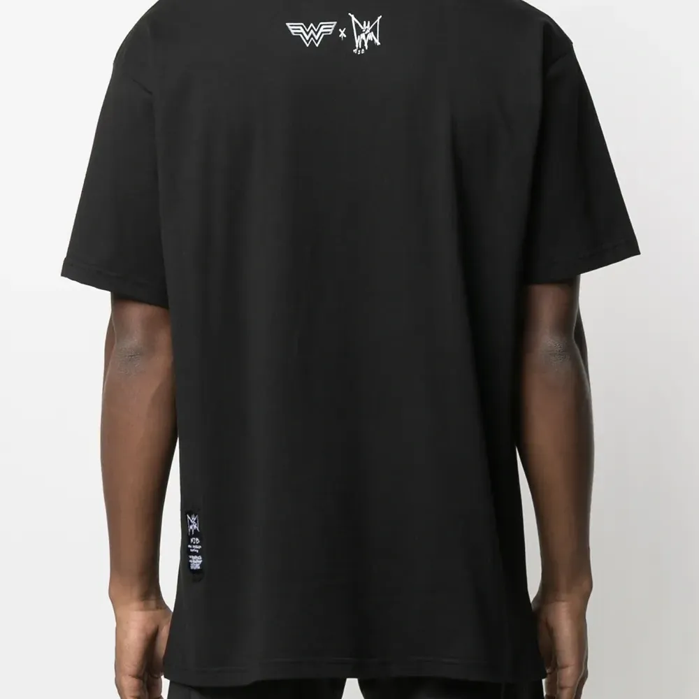 Графичный принт, круглый вырез и короткие рукава. Цвет: черный.