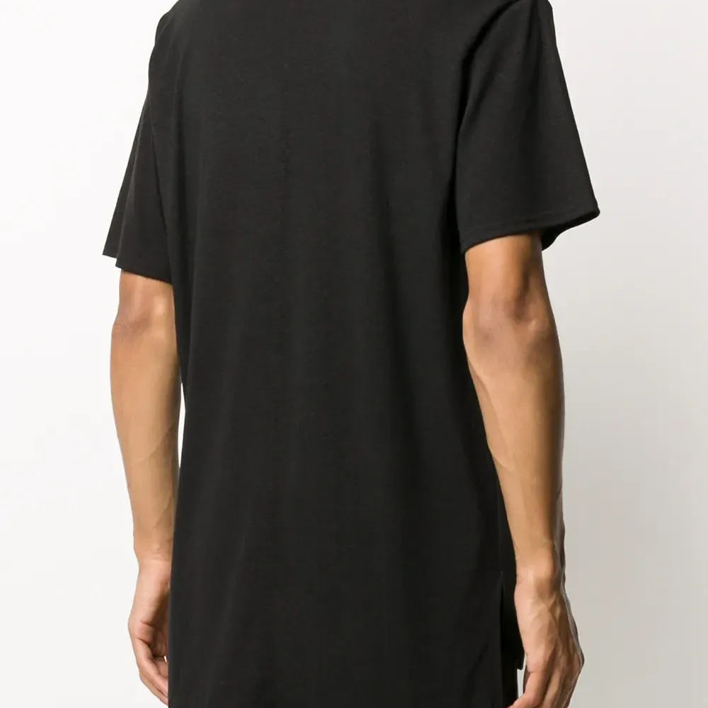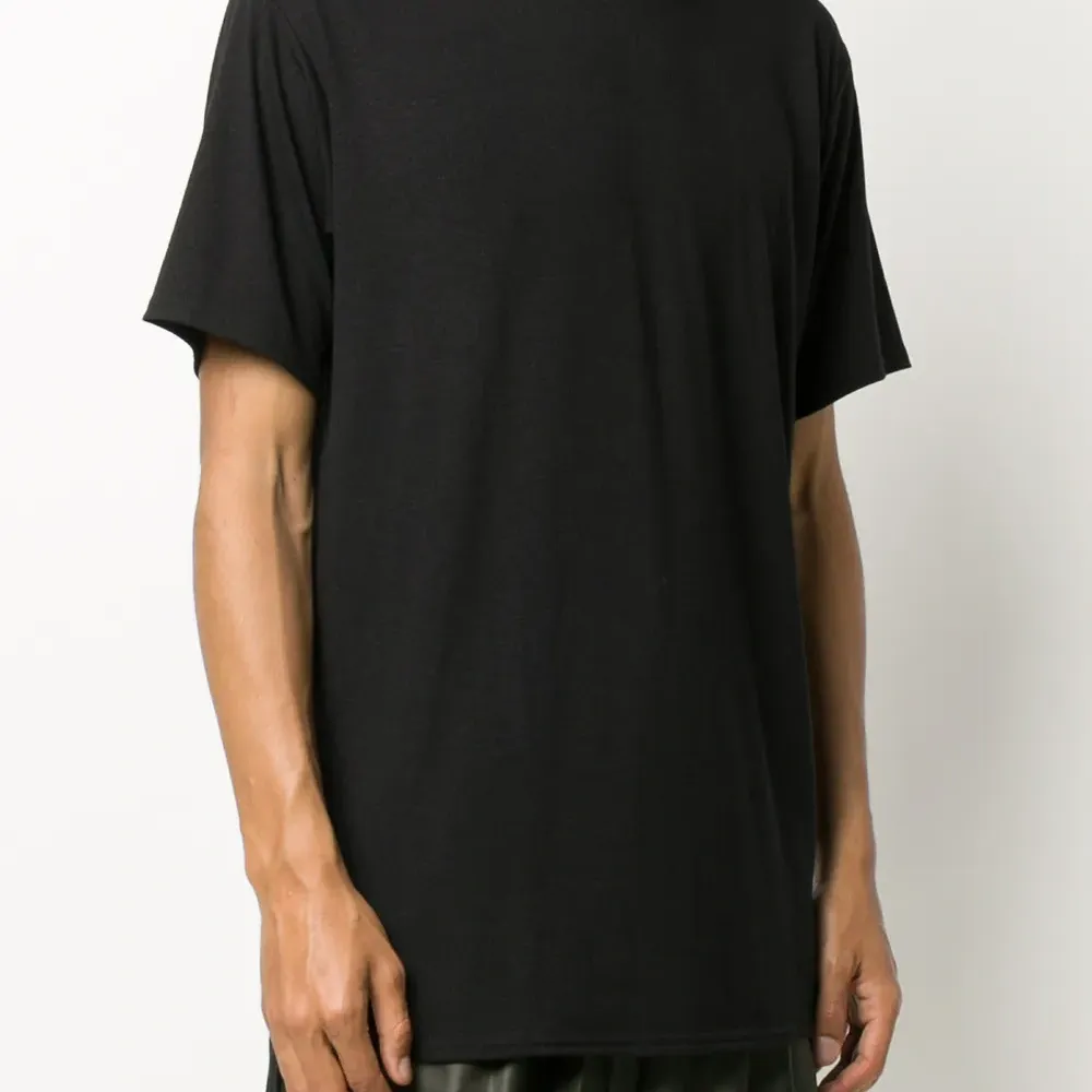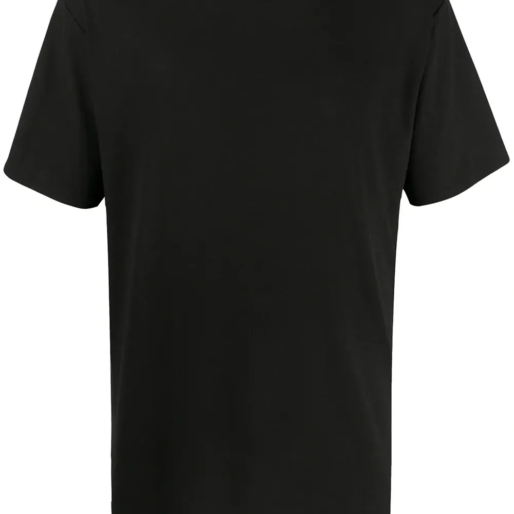 Круглый вырез, короткие рукава и прямой подол. Цвет: черный. Это унисекс-модель. Обратите внимание, что для нее используется мужская размерная сетка.