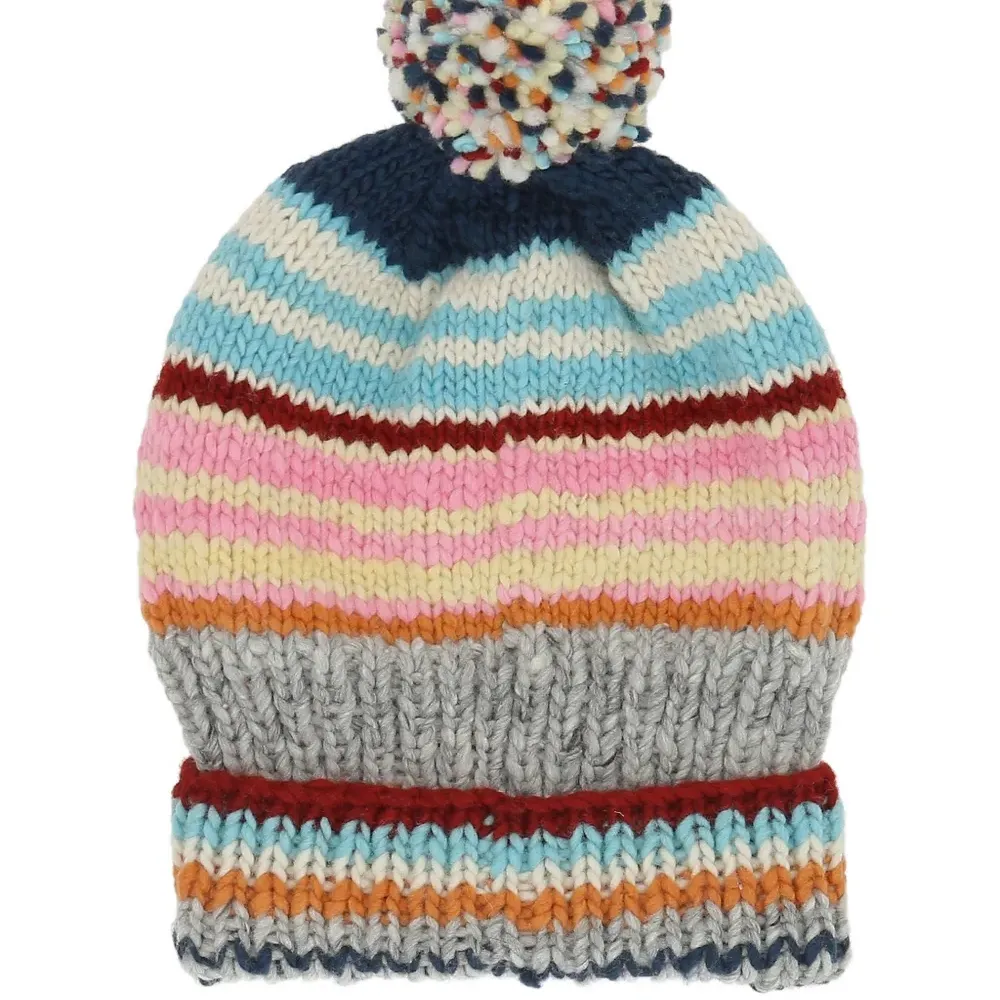 Вязаная шапка с помпоном и полосками