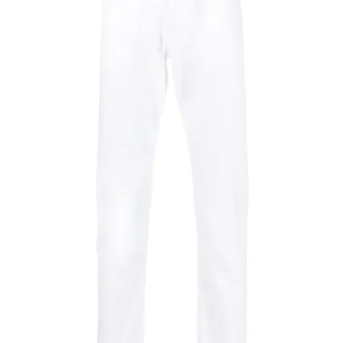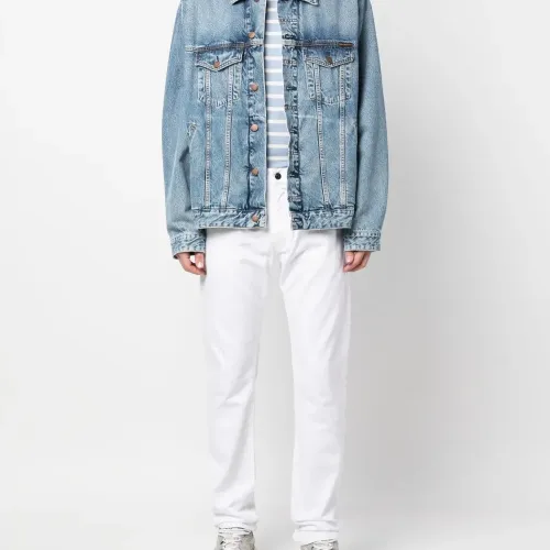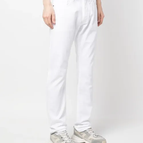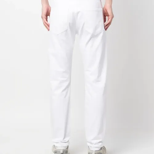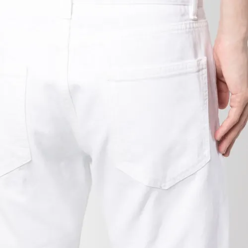 Белый, хлопок, деним, нашивка с логотипом сзади, застежка на молнии и пуговице спереди, пять карманов и прямой крой.