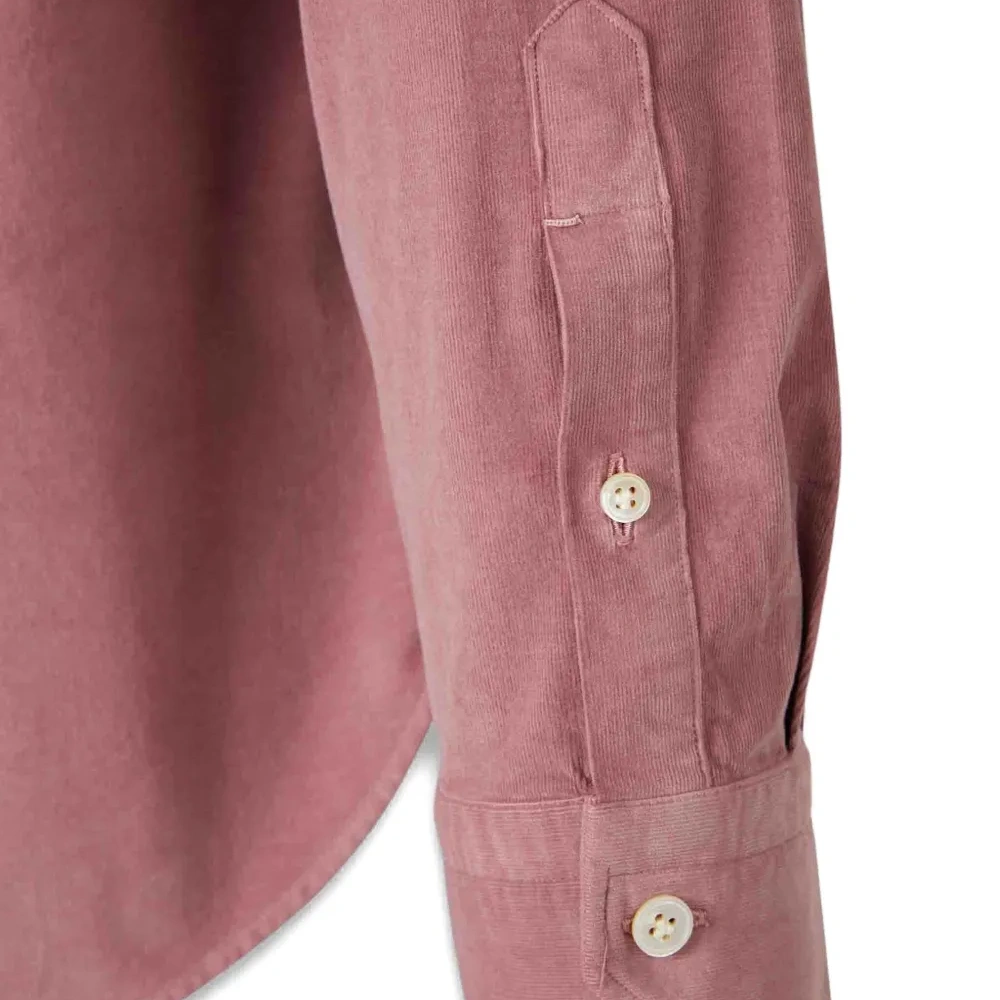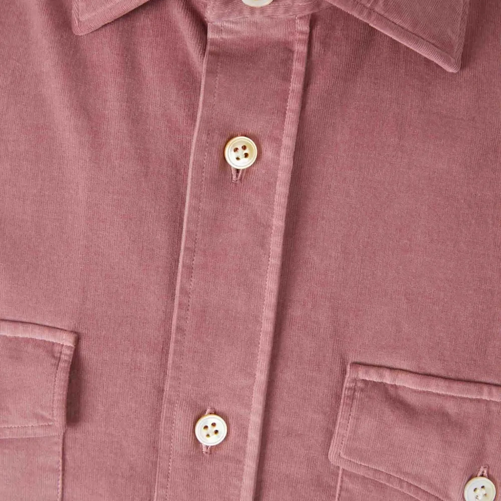 розовая классическая рубашка с воротником, застежкой на пуговицы спереди, манжетами на пуговицах и нагрудными карманами с клапанами