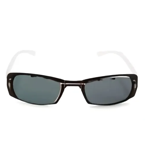 прямоугольная оправа цвета мокко и черного, тонированные линзы, носовые упоры. В комплекте идет защитный футляр.