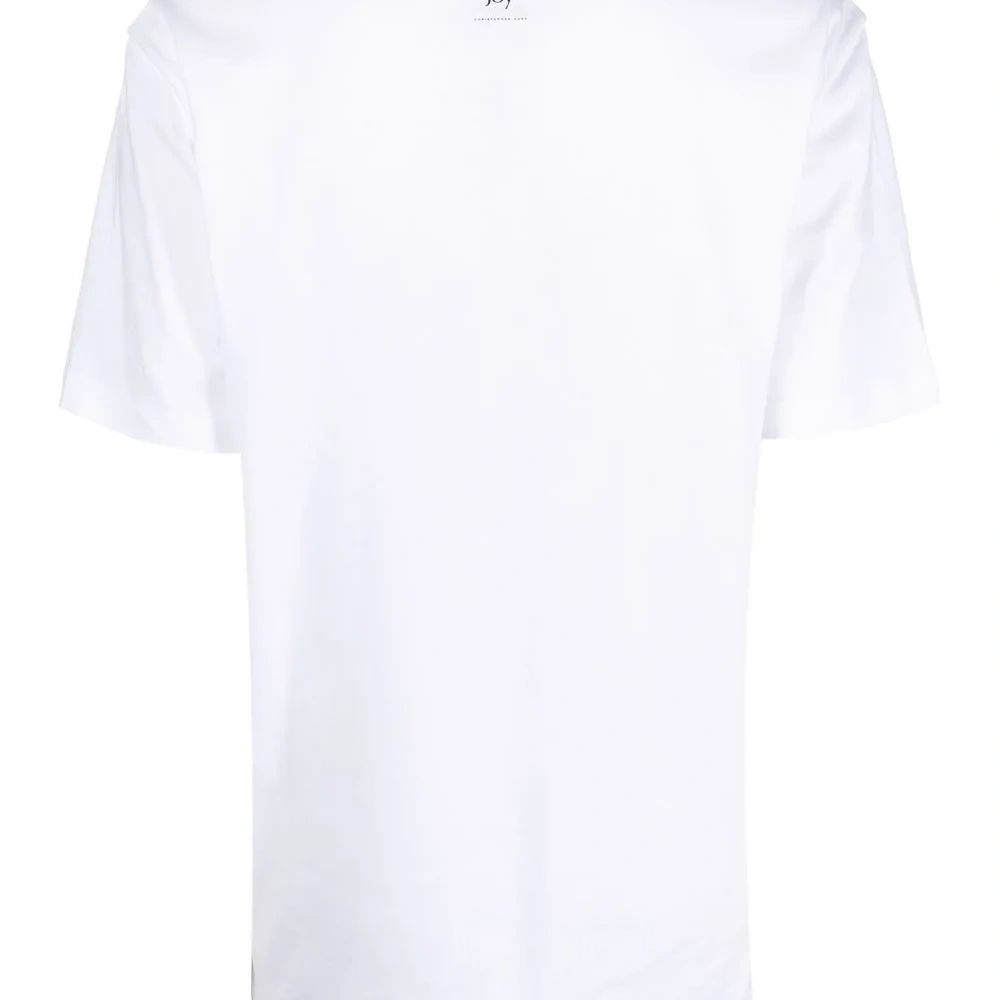 Белый, органический хлопок, графичный принт спереди, круглый вырез, короткие рукава и прямой подол. Ответственный выбор: Этот товар как минимум на 50% состоит из органических материалов.