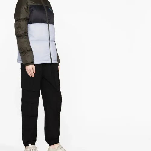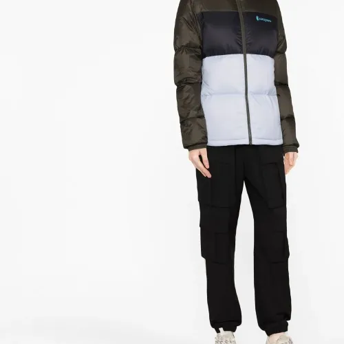 Наполнитель из пуха и перьев, классический капюшон, застежка на молнии спереди и длинные рукава.