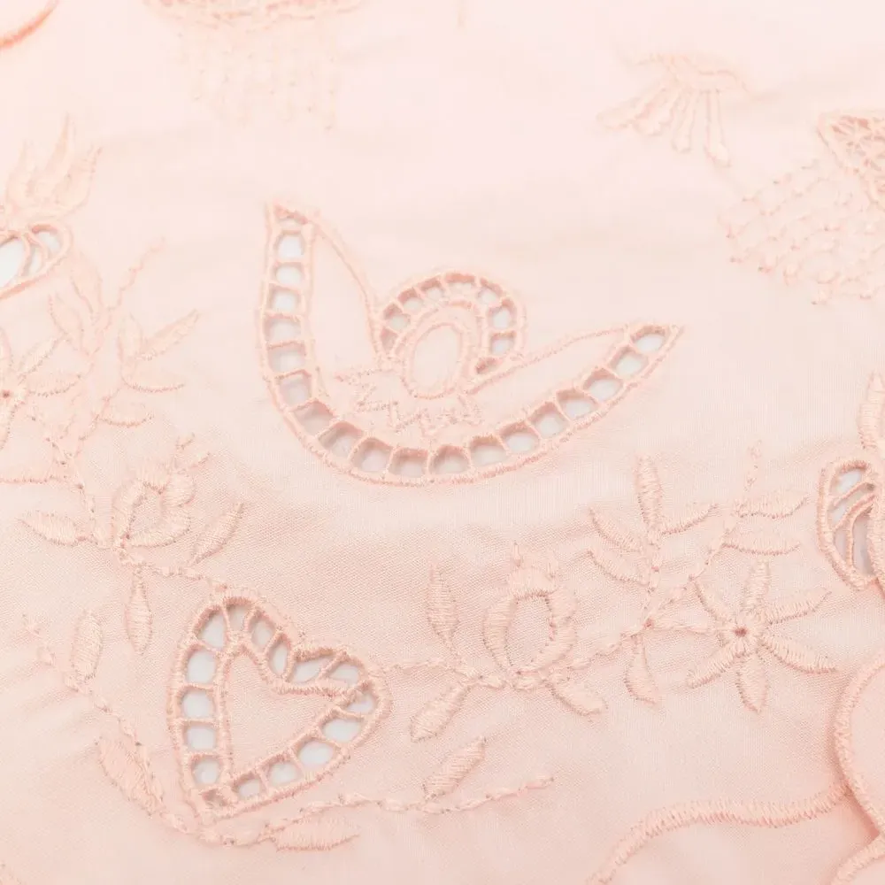 Светло-розовый, хлопок, без эффекта утяжеления, цветочная вышивка, английская вышивка и края с фестонами.