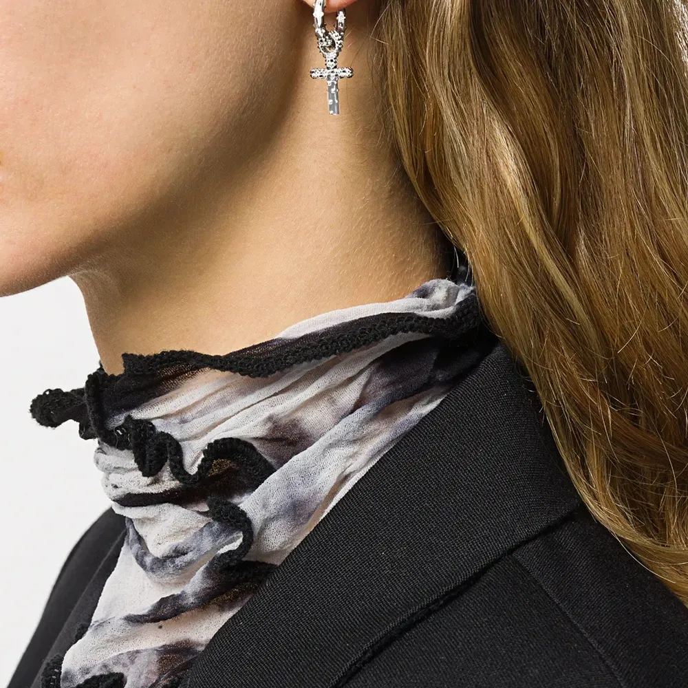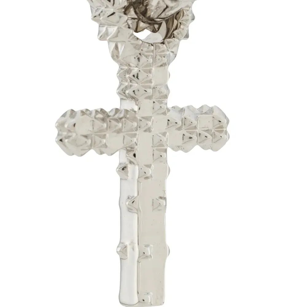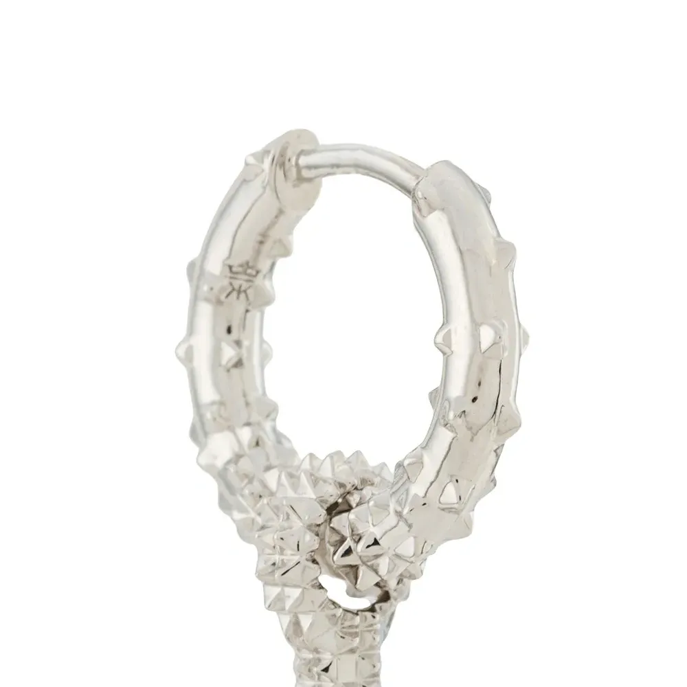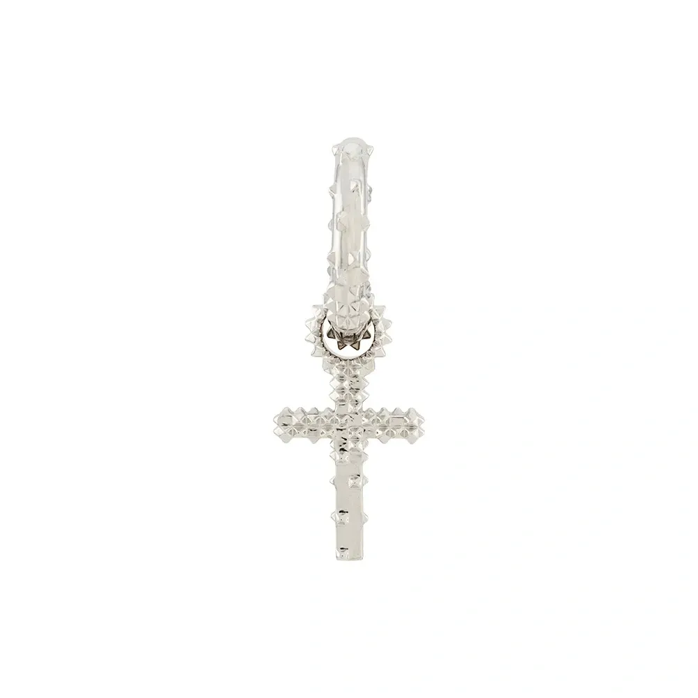 Серебряные серьги-кольца с подвесками в форме крестов от Kasun London. Ободки, детали с заклепками-шипами, кулон-крестик и смесь стерлинг серебра. Пожалуйста, обратите внимание, что это единичная серьга.