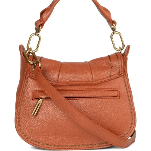 оранжевый плиссированные детали верхняя ручка фурнитура золотистого оттенка декоративная строчка застежка-молния