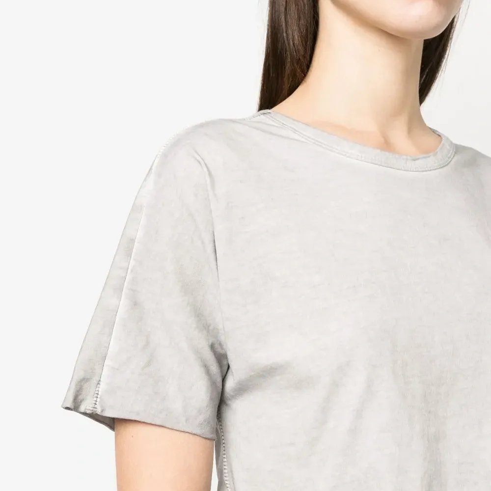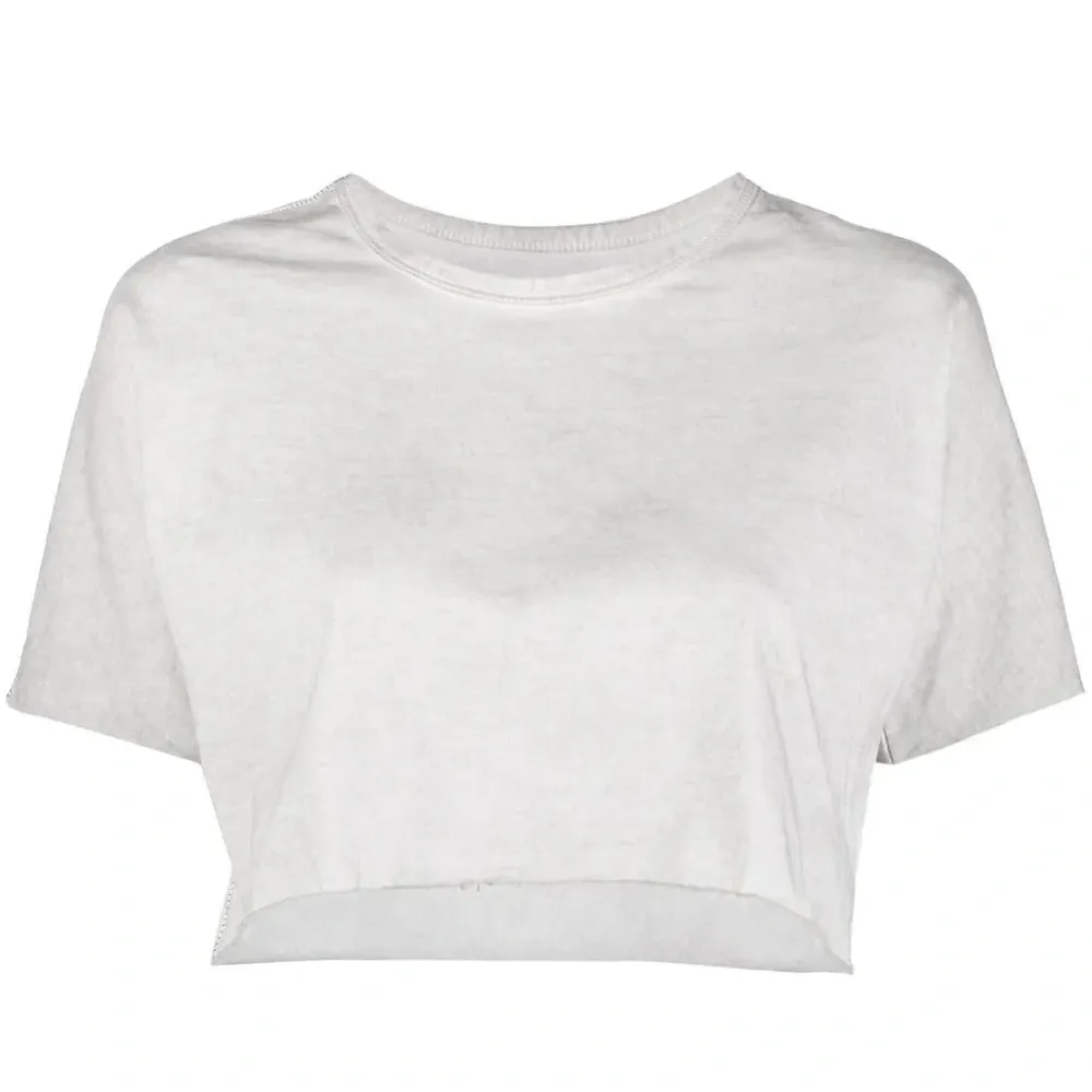 Светло-серый, органический хлопок, круглый вырез, короткие рукава и укороченная длина. Ответственный выбор: