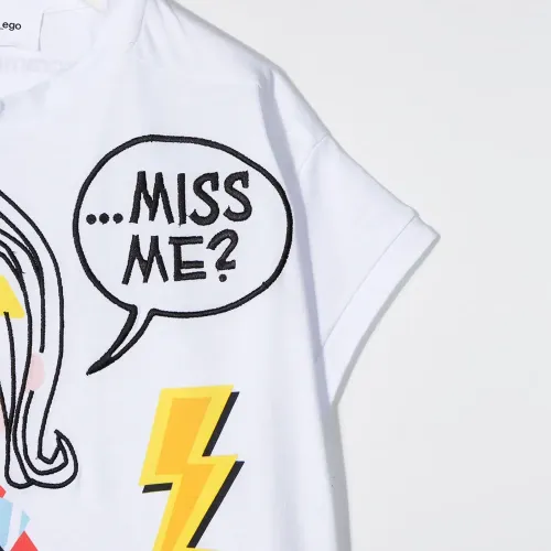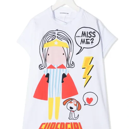 Футболка Supergirl от Scrambled_Ego. Круглый вырез, короткие рукава, принт спереди, вышитая деталь, принт с логотипом сзади и прямой подол. Цвет: белый.